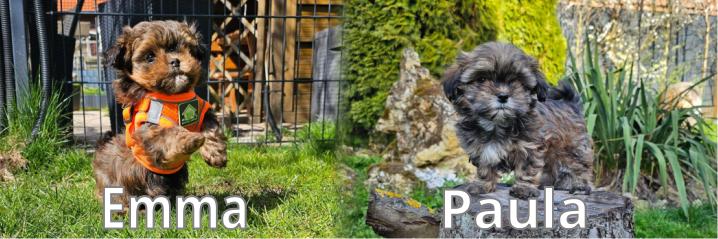 Hallo, wir sind Emma (mit Geschirr) und Paula, zwei fröhliche...